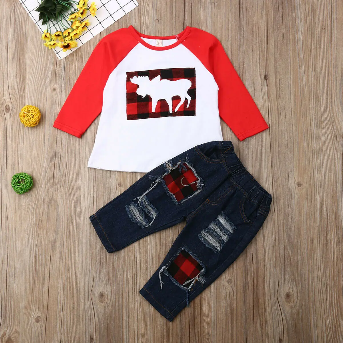 Cheap Chance of 2PCS Toddler Baby Boys Girls Christmas Clothes Long Sleeve Swatshirt T-shirt Tops Denim Pants Jeans