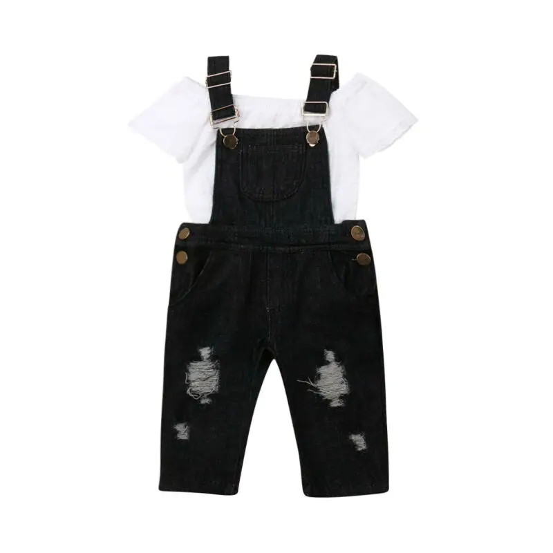 Best Price of Toddler Kid Baby Girls Clothes Sets White Lace Tops Bib Pants Jeans 2PCS Outfits Clothes Summer